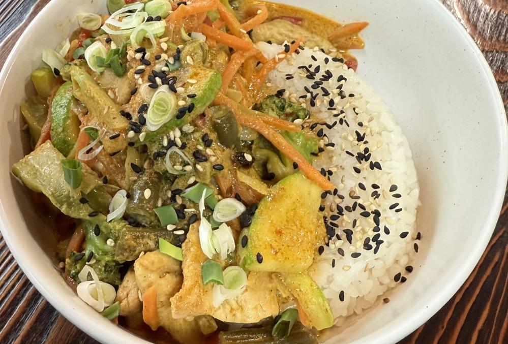 Это блюдо из категории «Вок» точно понравится любителям азиатской кухни. Нежный тофу, ароматный рис, хрустящие овощи и обжаренный арахис идеально сочетаются в этом блюде. Древесные грибы, проростки, зелёный лук, чеснок и кунжут придают вкусу многогранность.